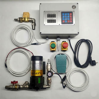 Для удобства работы система может быть оснащена металлической педалью для запуска налива. Функция удобна когда руки оператора заняты, в перчатках или когда неудобно каждый раз запускать налив с панели управления. Педаль нажимается ногой, руки оператора в это время могут менять тару, что экономит рабочее время.