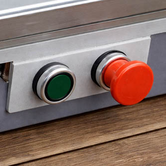 Когда панель управления находится на удалении или условия эксплуатации не позволяют удобно протянуть руку к клавиатуре или руки оператора заняты, в перчатках и т. д., для удобства работы можем предложить выносные кнопки «Пуск» и «Стоп». В комплект добавляются сами кнопки, а также провод 2 метра. Пользователь может увеличить длину провода до 100 м.